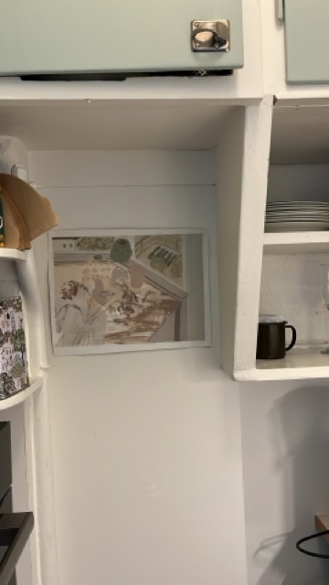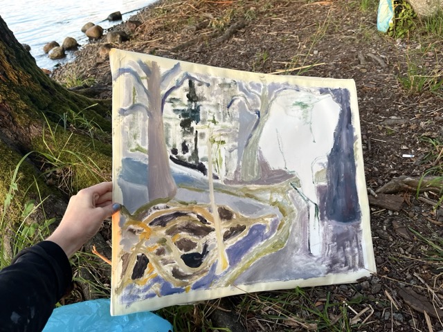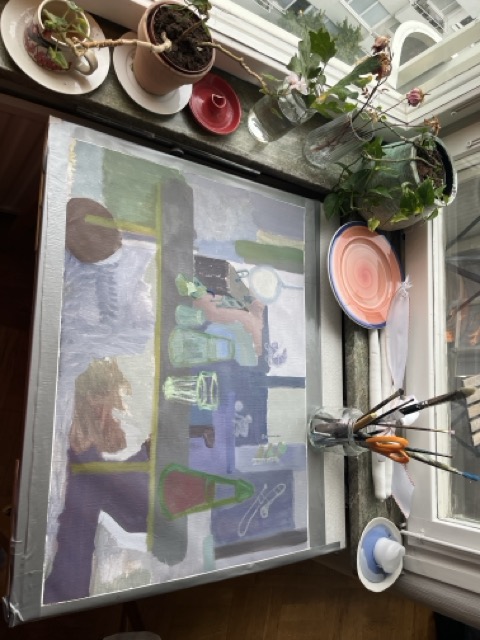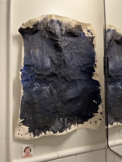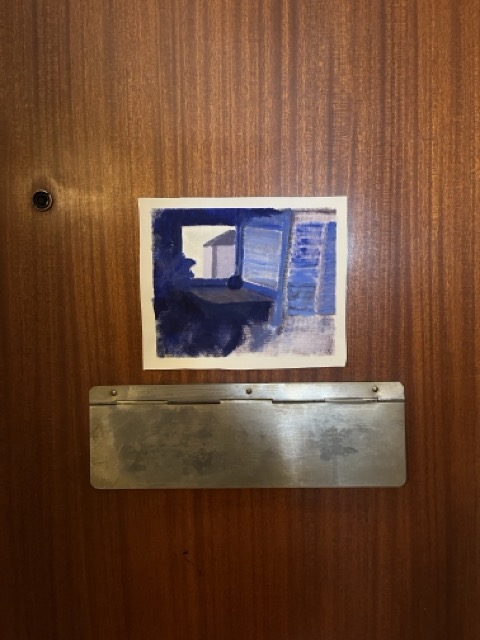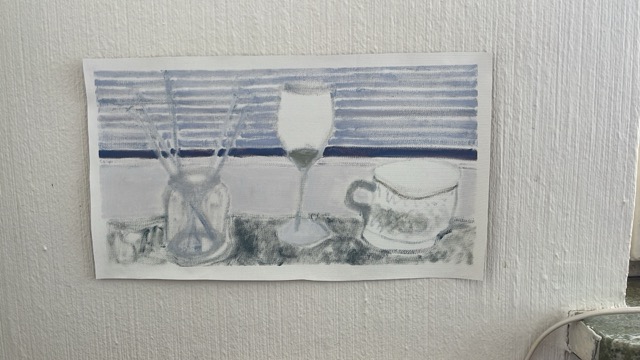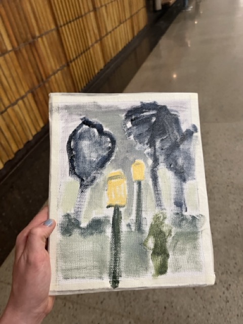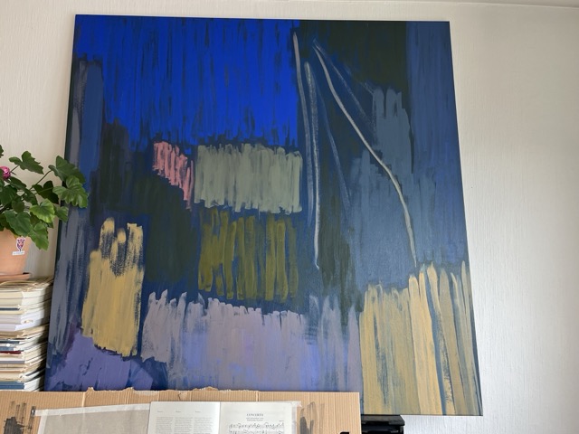 I gave this painting away to a person I was deeply unhappy in love with, then I needed a break from seeing them. A month later, I had to arrange with a friend to get it back for my planned performance at the opening of an exhibition. Now, I have to return it again